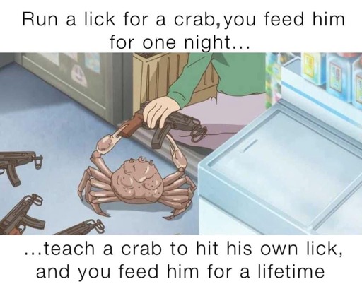 Track_Shovel@slrpnk.netEnglish · 9 hours agoFeed a crab for a lifetimeslrpnk.netimagemessage-square5fedilinkarrow-up172arrow-down14