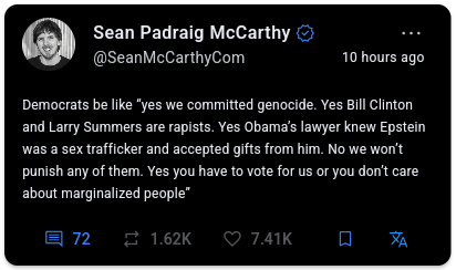 slothrop@lemmy.caEnglish · 1 day agoThis is concerning, that a rep feels they must post this.plus-squarexcancel.comexternal-linkmessage-square8fedilinkarrow-up1190arrow-down16