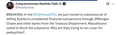 In the senate, calls for an investigation by Warren and Wyman and request for Senate to release files by Schumer, were also blocked on the same day Kirk was murdered.