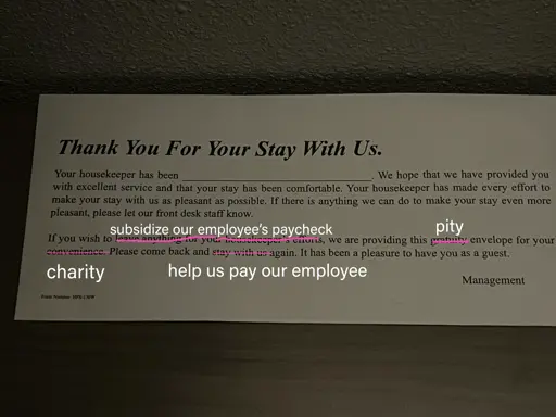 Tipping in general is a concept that should just die. Same actually as bonuses. I work at a rather large company where sales closing a deal will get them a bonus. In my job I don’t directly deal with customers, so I can never get a bonus. U don’t work less hard than sales. I would actually say my job is more stressful. They should just pay people what they’re worth.