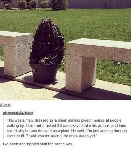 Yes, better than grabbing a gun and popping off. Dress as a plant? Go right ahead lol