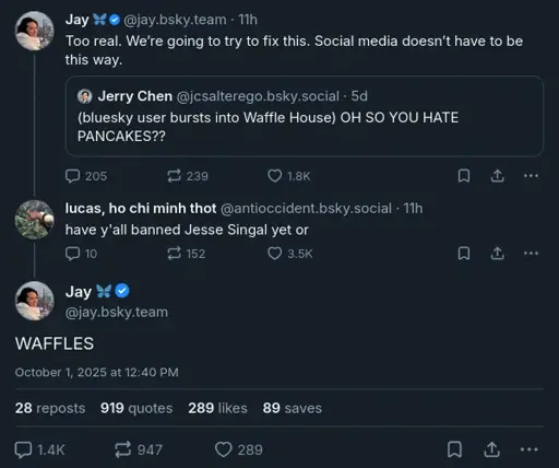 They recommend people other american centralized social media as an alternative to Bluesky in response to this, yet again. When are they going to learn?