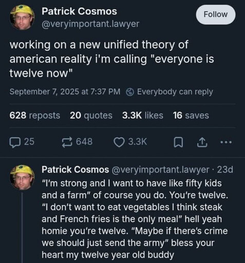 So uh… yep, mhm, the average American is about as stupid as a 12 year old, that’s a bit on the optimistic side though.
