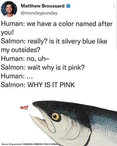 ickplant@lemmy.world to Lemmy Shitpost@lemmy.world · 20 hours agoPoor salmonlemmy.worldimagemessage-square32fedilinkarrow-up1675arrow-down110