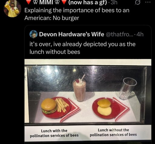 cm0002@lemdro.id to Funny@sh.itjust.worksEnglish · 9 days agoExplaining the importance of bees to an Americanlemmy.mlimagemessage-square57fedilinkarrow-up1479arrow-down118