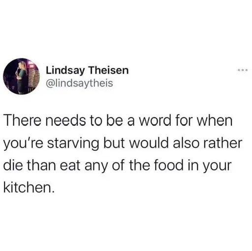 minus-squareMyTurtleSwimsUpsideDown@fedia.iolinkfedilinkarrow-up6·19 days agoThe love of my life gets hangry like this… the conversation usually goes something like: I’m hungry what would you like? I dunno, I just want food We could make _____ No! not that. Okay, does ____ sound good? that’ll take too long how about _____ that’s too much work what about [takeout] I can’t wait that long for you to go get it. I’m hungry now. How about [fastest takeout in town] TOOOOOOOOO! LOOOOOOOONG! I NEED FOOD NOW! Uhh… Uhh… We have cereal? Eww! Gross! I don’t know how to help you. I don’t known how you can’t understand that I’M HUNGRY. All I want is food. It doesn’t matter what. Well apparently it does matter. I don’t need that attitude! I need you to FEEEEED MEEEE! Good God! Here’s a snackbar and a sparkly beverage. Go sit down away from the kitchen and I’ll have a box of risotto ready in less than 15 minutes.