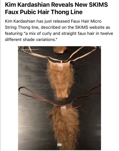 I couldn’t believe it myself, but it’s real. https://people.com/kim-kardashian-debuts-skims-bush-underwear-11829476