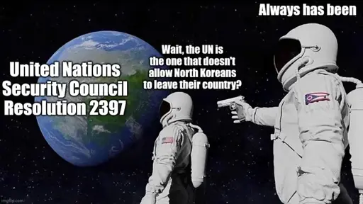 Oh, so the UN decided that DPRK nationals aren’t allowed to work abroad. That seems fair. Like, if Israelis worked abroad, sent money home, and then that money was used for genocide. Or if US citizens worked abroad, sent tax money home, and that tax was used for genocide. Kinda like that. Or any country that maintains a nuclear arsenal, that isn’t part of the the nuclear non proliferation treaty. Like Israel. Or Pakistan.