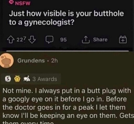 It’s apparently less common than it used to be (I’m quite old, and I also had pelvic pain which is another reason for doing a rectovaginal exam) but considering the fact that colorectal cancer is skyrocketing in young adults maybe it should make a comeback. Anyway I yeeted the uterus about 10 years back, yay!