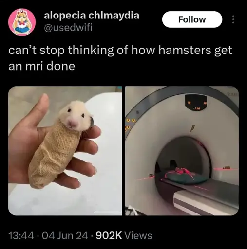 So cute. But would you do an MRI on a hamster? They only live a couple years anyway! xD