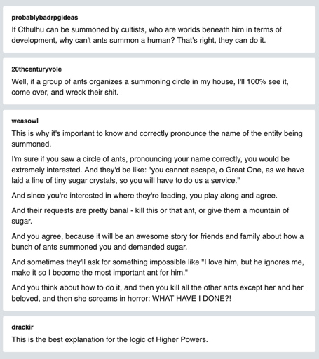 I did put higher and lesser beings in quotes for a reason. I am not assuming that humans are better than crows.