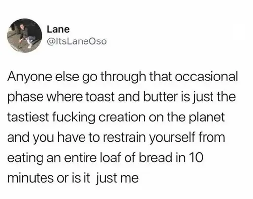 But I mean, two sources of fat doesn’t make it redundant, they’re doing different things. The butter makes the toast not dry, and the peanut butter makes it creamy and adds flavor. It’s like a grilled cheese, cheese and butter are both fat sources, but they’re not redundant.