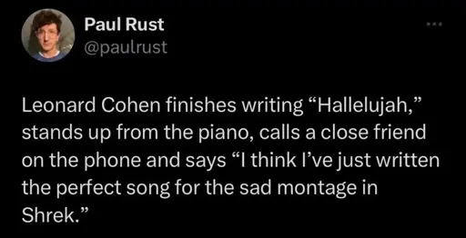 Tbh, I think the only problem with its use in watchmen is that they didn’t use the Jeff Buckley version. The song Hallelujah is an intersection of faith, sex, and the human experience, so lyrically the song fits the movie’s theme. I just think Cohen’s version lacks any sex appeal…so people tend to just focus on the religious overtones of the lyrics.