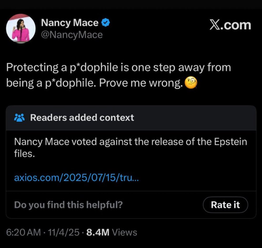 Trump is a rapist and Epstein is an accomplice. Johnson avoiding a vote is a form of enabling, but that is not as bad as the rapist and their accomplice.