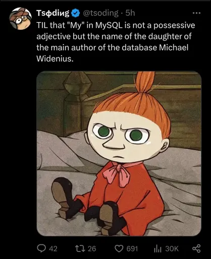 Lena@gregtech.eu to People Twitter@sh.itjust.worksEnglish · 2 days agoGuess what Maria stands for in MariaDBgregtech.euimagemessage-square8fedilinkarrow-up1116arrow-down13