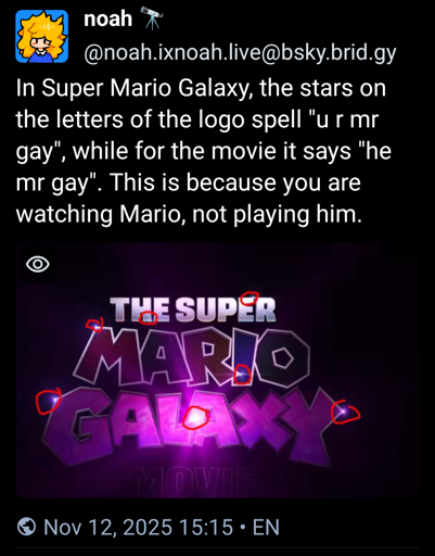 the stars on the title of the 2007 game “super mario galaxy” are what spell out “u r mr gay” / “you are mr gay”