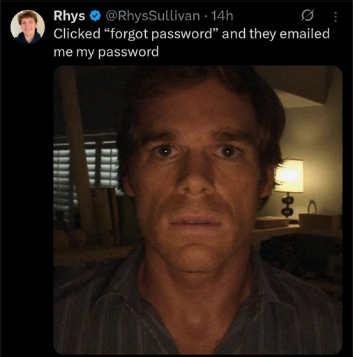 I mean the bigger problem in this meme is that they’re able and are emailing the plaintext password.