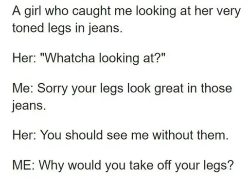 minus-squareZapados@sh.itjust.workslinkfedilinkEnglisharrow-up5·7 hours agoWho wouldn’t want to take off thier legs? You could fit through small spaces like an air vent.