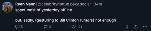 A Bluesky post by Ryan Nanni @celebrityhottub.bsky.social