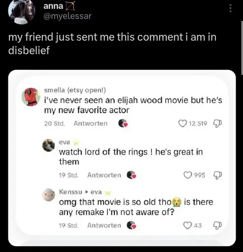 I know a highschooler that won’t watch anything from before 2000, won’t watch lotr for other reasons like broken attention span.