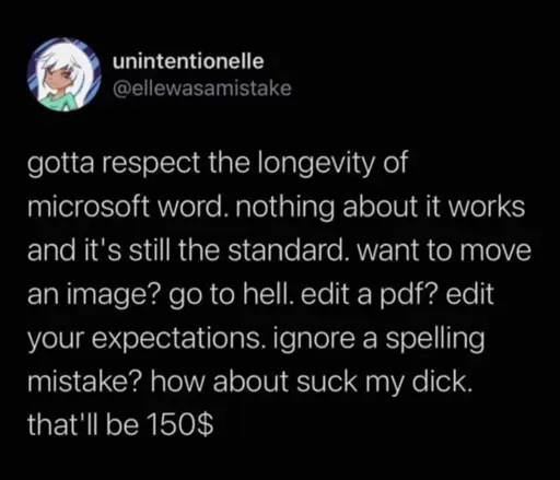 It’s got way too many features like 3d rendering. It’s proprietary. Simple things like copy and paste from a paper with columns does not work and is basically an unsolved AI problem.