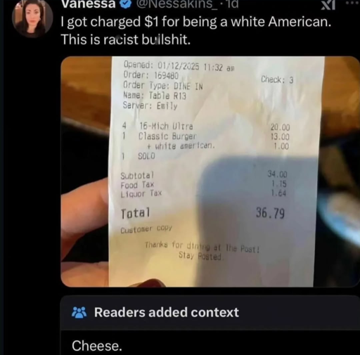 arrow-up11.06Karrow-down1imageRacism restaurant media.piefed.worldno banana@piefed.world to Lemmy Shitpost@lemmy.worldEnglish · 3 days agomessage-square128fedilink