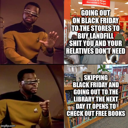 Ugh but books are just about the main thing I’m consumerist about. I WANT to have them in my home indefinitely. I want to be reminded a specific title exists by seeing it on the shelf, and then reread it. And I want to underline or comment on my favourite passages in pencil. They’re the one non-necessity I’ll keep splurging on; pretty much everything else is handed down, borrowed, or necessary to some extent.