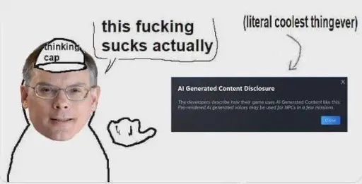 minus-squarebelluck@lemmy.blahaj.zonelinkfedilinkarrow-up31·4 hours agoEpic Games CEO wants Steam to remove AI disclosures