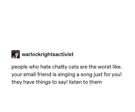 Fair, but there is definitely a line between chatty and psychological warfare. Not all cats are built equal and some of them want to see it to that a good night’s sleep is forever out of reach. That’ll literally drive you crazy, regardless of what mindset the silly humie is bringing