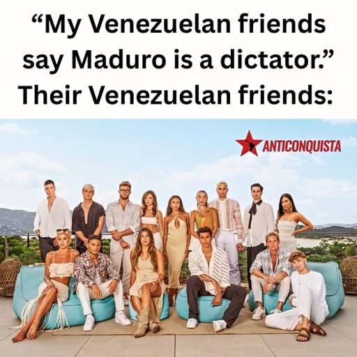 arrow-up188arrow-down1imageMy Venezuelan friends say Maduro is a dictatorcrazypeople.onlineحمید پیام عباسی@crazypeople.online to Memes@lemmy.ml · 7 hours agomessage-square63fedilink