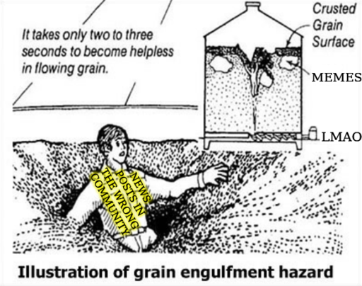 Another Illinoisan checking in. I detassled with a kid who died this way one summer. He was like 17. Do NOT fuck around with corn silos. Have a classmate who’s kid had his pantleg get caught in a tractor’s PTO (I think - it may have been something connected to it)… absolutely tore his leg up and almost bled out (reconstructed and he’s walking now). And knew another dude who had a tractor roll over on him on a slope. I personally, sank the end of a razor sharp derogueing hook into my thumb and narrowly avoided lopping it right off. It’s dangerous fucking work and demands your respect and constant attention.