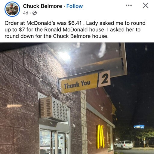 To be fair, the Ronald McDonald House is a fairly good charity, at least in my opinion. They were very helpful when my newborn son was in the NICU.