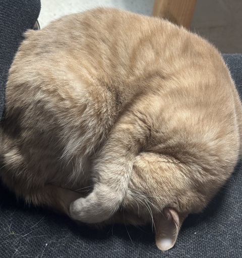 to me, the back legs need to be extended past the head to qualify as shrimping. this is just a curled up kitty
