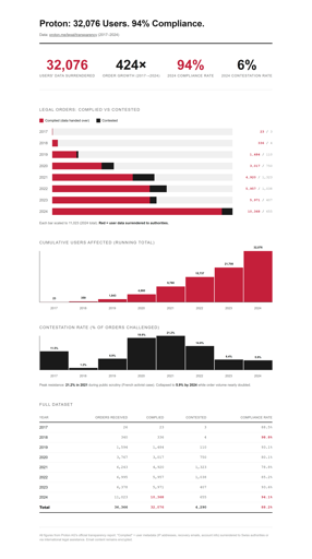 arrow-up189arrow-down1imageProton has handed over 32,076 users' data to governments since 2017. Their own transparency report states a 94% compliance rate in 2024.lemmy.ml☆ Yσɠƚԋσʂ ☆@lemmy.ml to Privacy@lemmy.mlEnglish · 5 days agomessage-square31fedilink