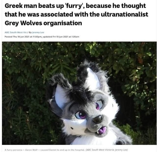 My question is, did he mistake him for a nazi on the costume alone, or did the furry introduce himself as Aaron wolf (it says thats his furry name in small text at the bottom) and the greek guy misheard it as Aryan wolf?