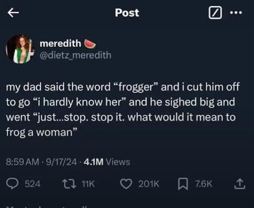 minus-squarefleem@piefed.zeromedia.viplinkfedilinkEnglisharrow-up12·1 month agowhen i was a kid, a medium-light punch with the middle knuckle protruding a bit more than the rest was known as a “frog” or “frogging” or “getting frogged” but these days you’re more likely to see me squelching in my glop