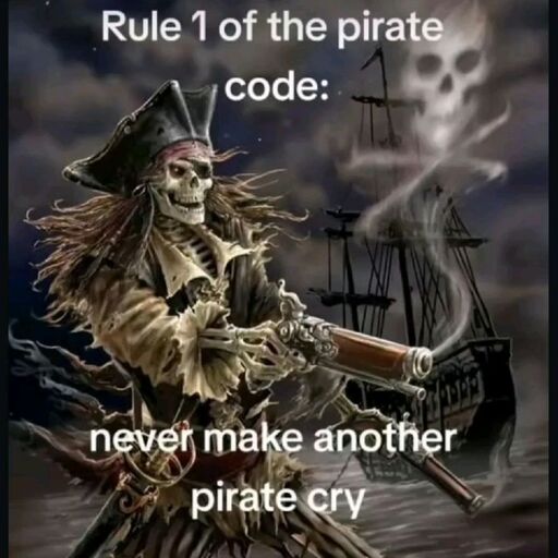 agent_nycto@lemmy.world to Lemmy Shitpost@lemmy.world · 21 days agoRules of the pirate codelemmy.worldimagemessage-square11fedilinkarrow-up1327arrow-down15
