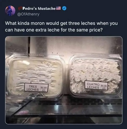 The “Cuatro Leches” is like the jackasses on The Price is Right who, seeing you’ve bid $500, bids $501.