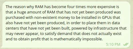 cm0002@toast.ooo to Funny@sh.itjust.works · 2 months agoWhy RAM is so expensivelemmy.mlimagemessage-square41fedilinkarrow-up1876arrow-down111