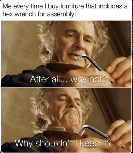 Y’know, I really wish they’d put in a little hidden alcove to keep the bundled tools with the furniture. Just adding a recess to an insignificant, normally hidden corner would be neat. Sometimes you just need to quickly tighten something up, or they’re a really weird measurement that’s a pain to find the right fitting tools for.