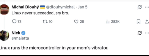 minus-squarejaybone@lemmy.ziplinkfedilinkEnglisharrow-up2·11 days agoI saw a video of someone running Doom on a vibrator.