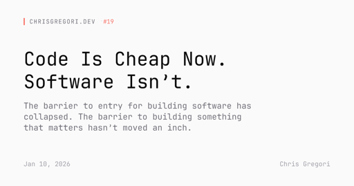 arrow-up1119arrow-down1external-linkCode Is Cheap Now. Software Isn’tchrisgregori.devcodeinabox@programming.dev to Programming@programming.devEnglish · 14 hours agomessage-square17fedilinkfile-text