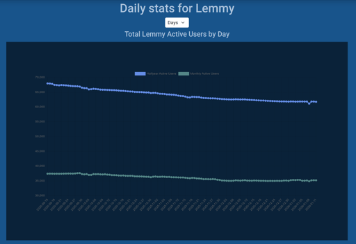 Using the daily rather than monthly view on https://lemmy.fediverse.observer/dailystats&days=120 shows a much stable line (especially if you take into account Piefed’s growth: https://piefed.fediverse.observer/dailystats&days=120 )
