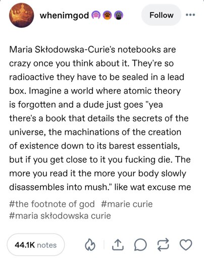 So I’m not sure I’d call that heroic discovery because they already knew what would happen and were just showing off how much balls they had fucking with something so deadly.