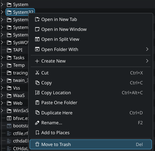 i did it for the old “delete system32” memes before i nuked the drive. fun fact: when i tried to empty the trash with system32 inside dolphin even threw me an error.