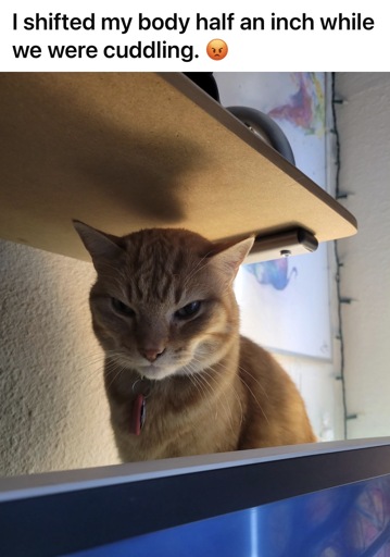 The side eye is killer! How dare the human move at all! So rude!!