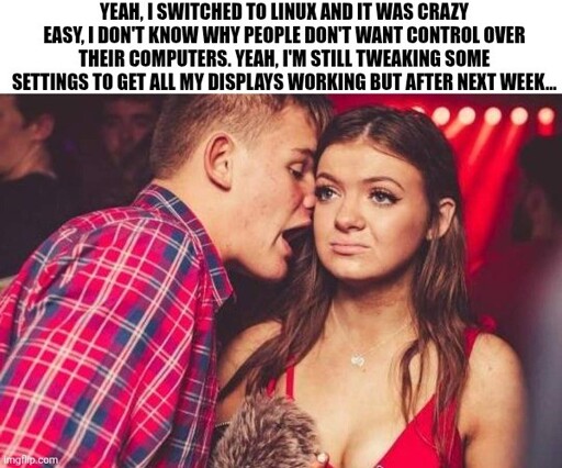 My issue comes because my set up is highly unusual, the third display is an infrequently used tv that’s connected through a receiver. With a little bit of fighting I have a workable albeit inconvenient system. A fix is possible but as stated in the meme, it’ll take some effort etc.