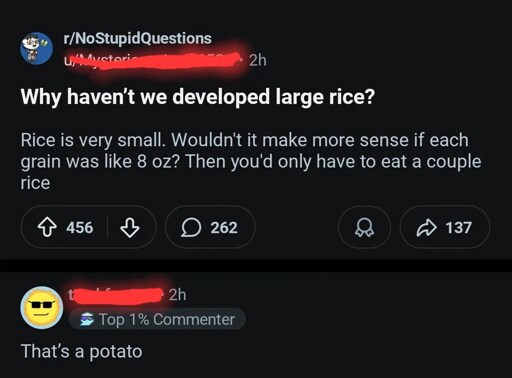 Yeah, that’s like… 250 billion tons of rice. That’s over 30 tons of rice per person in this world. Not sure this much rice even exists on this planet.
