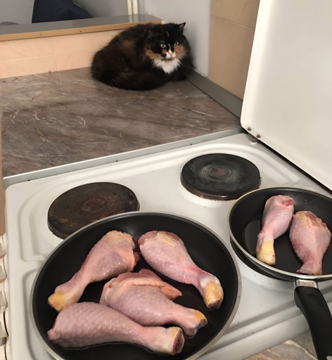 I honestly don’t cook so it is a non issue for me. I don’t set my takeout and silverware directly onto the counter without a plate. I have always kept fruit and veggies in the fridge, even if you can technically leave them unrefrigerated. Maybe I’m weird, but I put things like apples and loaves of bread in the fridge, even before getting a cat. I get microwavable things that go directly from the freezer into the microwave.