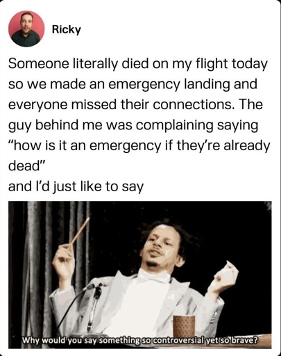 tell that to the passenger strapped next to the dead guy for however many hours.